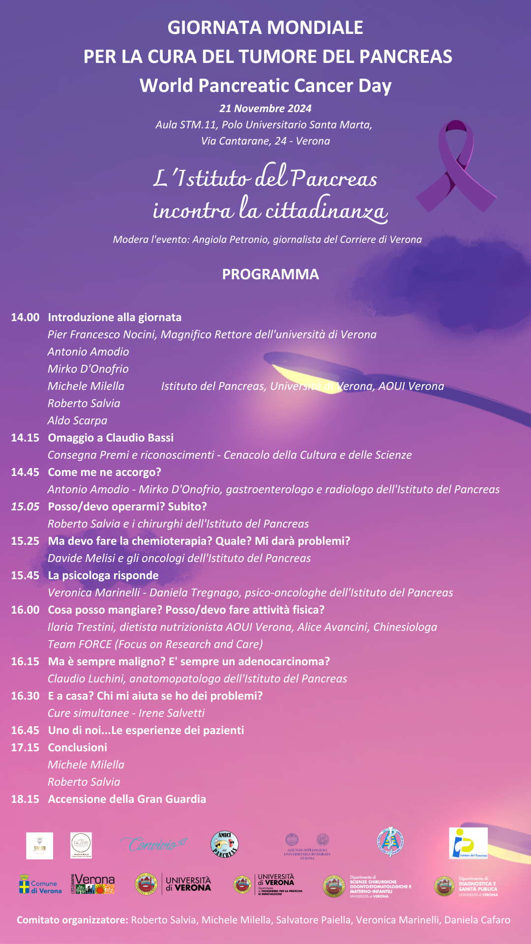 Divulgazione scientifica alla cittadinanza sui tumori pancreatici, con focus speciale sull'adenocarcinoma pancreatico.